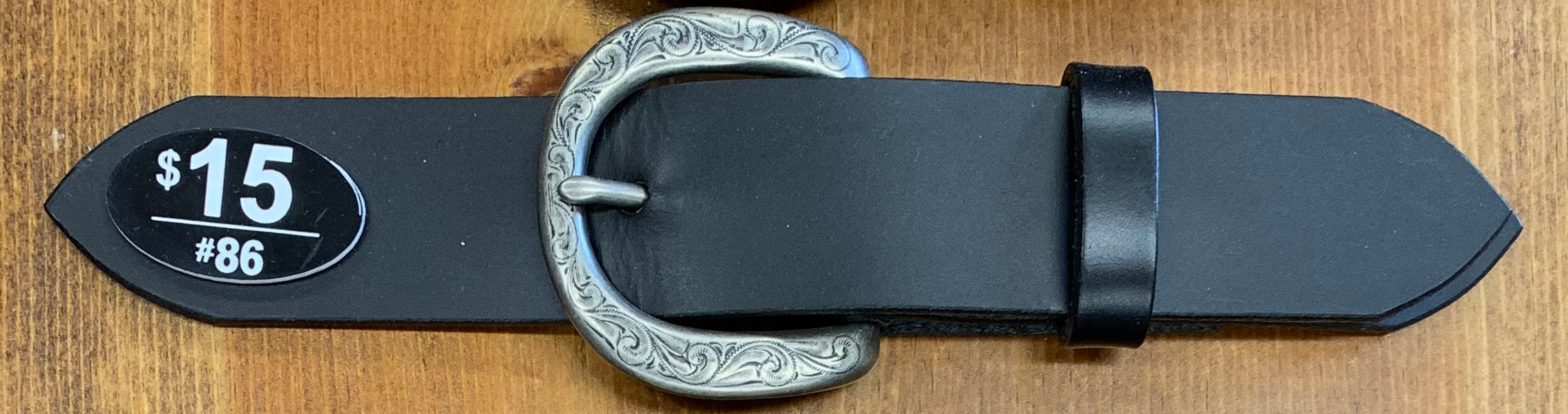 • 1 1/2" wide with 7 holes punched - Silver belt buckle and shotgun decorative leather keeper included