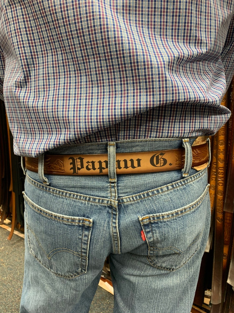 • Our belts are cut with the design facing up and when you put the belt on .. you start to the left. If you need a left handed belt not a problem; please let us know when checking out